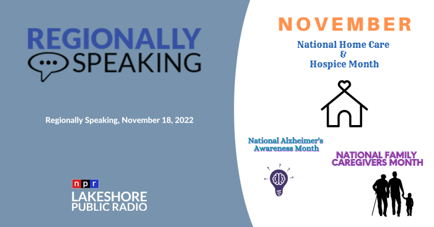 Today: As family gathers around the table for the holiday meal, financial advisor Greg Hammer recommends takin some time to have a critical financial conversation to ensure everyone is on the same page. November recognizes National Family Caregivers Month as well as National Hospice Month so Lakeshore Public Radio's Dee Dotson and Tom Maloney speak with local organizations that provide support to help seniors remain in their home for as long as possible. LaVonne Jarret is the director of the VASIA program. She tells us how the organization prepares community volunteers to advocate for the voiceless. We also hear from Erica Kerkes with VNA Hospice. The organization supports families during the end of life experience....later the Alzheimer’s Association offers tips to help caregivers support. All of that and more on this edition of Regionally Speaking.